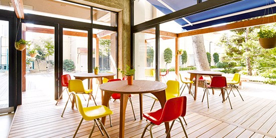 学生たちのためのスペース。休憩時間や授業の合間など、自由に出入りできます。