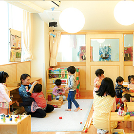 保育現場で子どもたちが楽しんで絵を描いたり製作したりするために、図工室では基礎的な知識や技術、方法を学びます。学生たちの作品も展示しています。