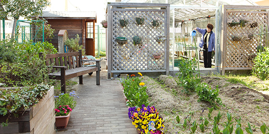 信愛キャンパスの癒やしスポット。「園芸療法士」資格取得のための実習園としても使われます。