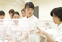 看護実習は、1年次(基礎看護学実習Ⅰ)、2年次(基礎看護学実習ⅠⅠ)、3年次(領域別看護実習)の3回。大学の近隣にある6つの総合病院を中心に、精神科病院、高齢者施設、訪問看護ステーション、保育所など、各専門領域に合わせて最適な実習先で学ぶことができます。